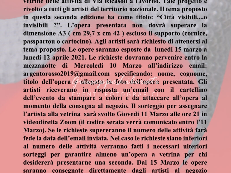 Perciò è nata l’ Associazione Artistico Culturale e di Promozione Sociale Argento Rosso. E’ stata registrata ed abbiamo inaugurato presso la pasticceria Magrì di Livorno con la mia mostra fotografica “Livorno in bianco e nero“. Siamo nati da poco ma le idee sono tante. Il nostro intento è quello di organizzare eventi per i nostri soci e per artisti esterni che desiderino promuoversi o partecipare alle nostre mostre, presentazioni, corsi, workshop, camp esterni, ecc. Un ringraziamento a Dario Ballantini e Daniela Maccari per essere stati presenti alla nostra inaugurazione.